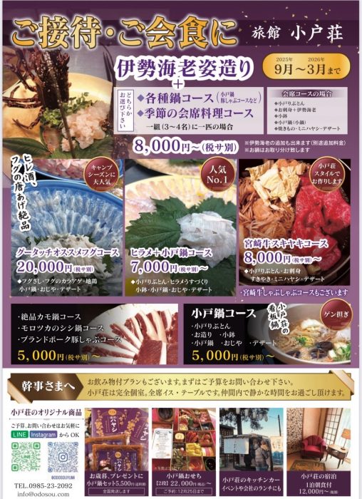 宮崎にお客様がお見えになるようなお席はぜひ小戸荘へ😊