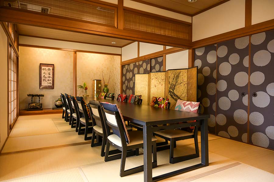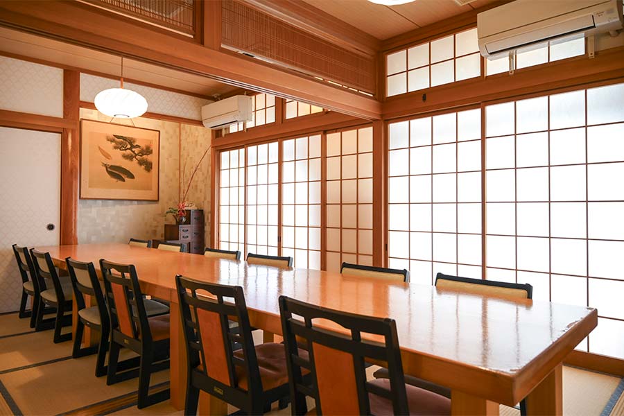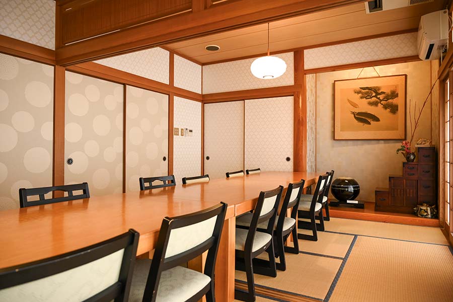 小戸荘では、ご会食やご接待、大切な節目のお席にふさわしい個室をご用意しております。