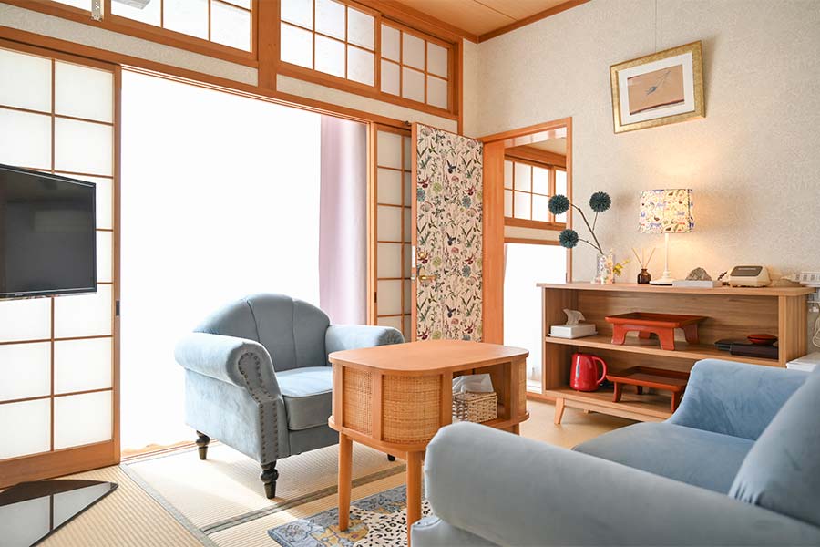 和モダンの温かみ溢れる空間。我が家のよう手足を伸ばしてくつろいでいただけます。